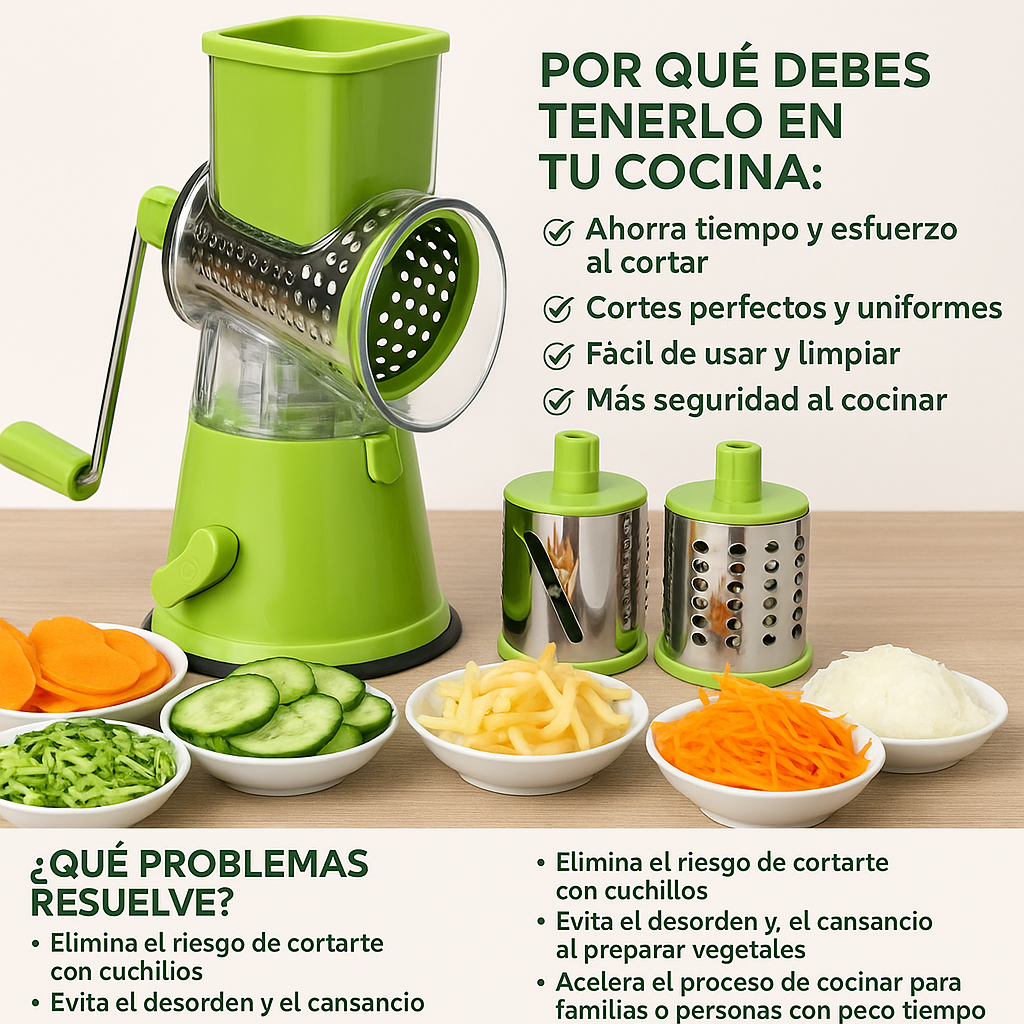 🔪 ¡Corta, ralla y rebana en segundos como un chef! 💚 Come más sano sin perder tiempo en la cocina